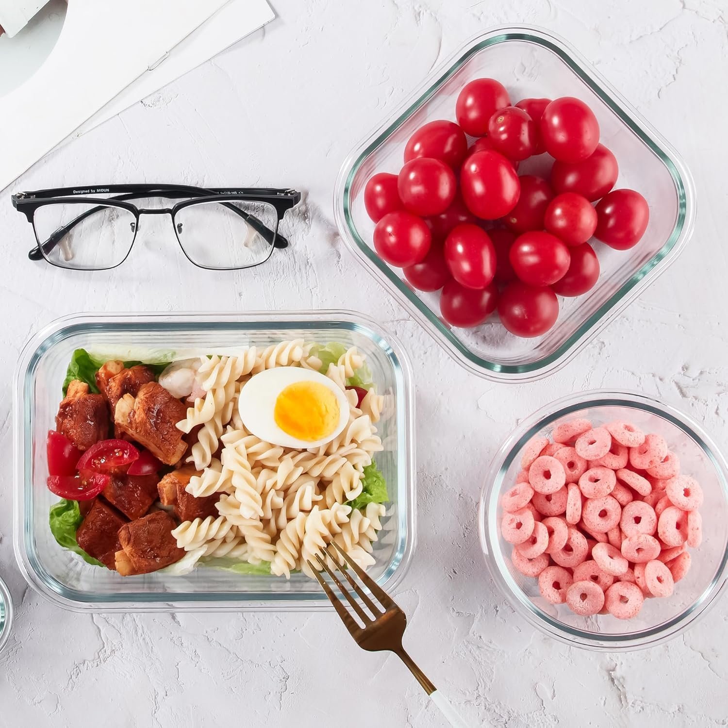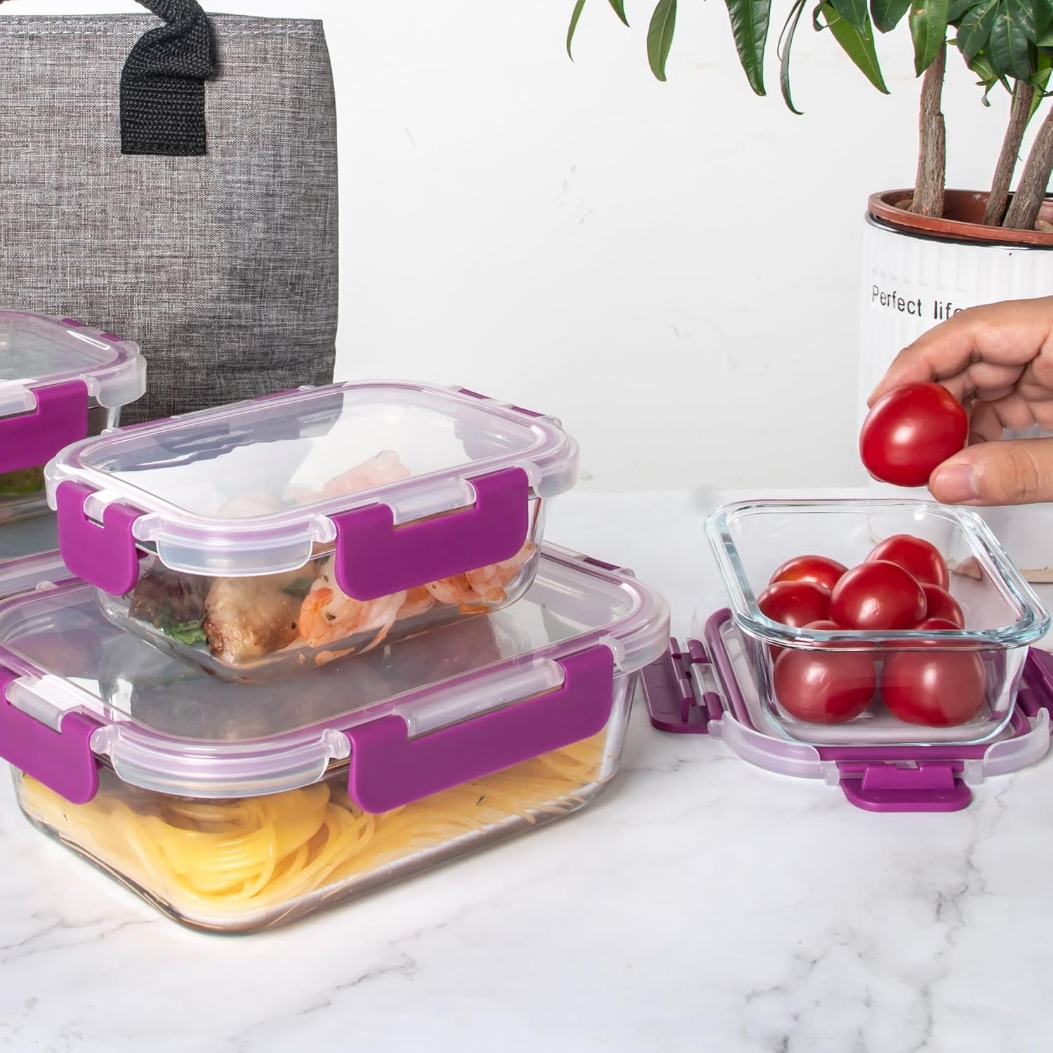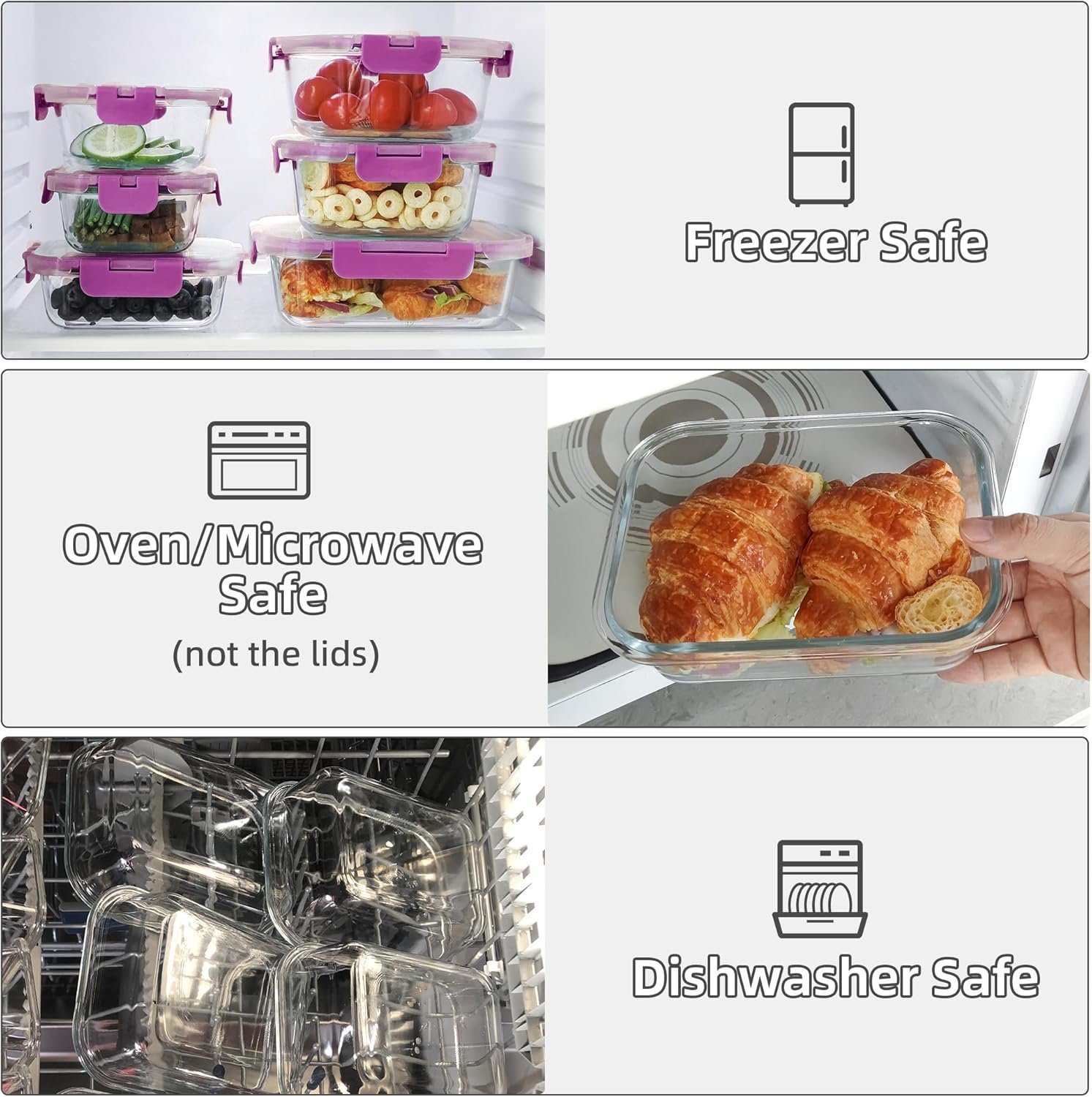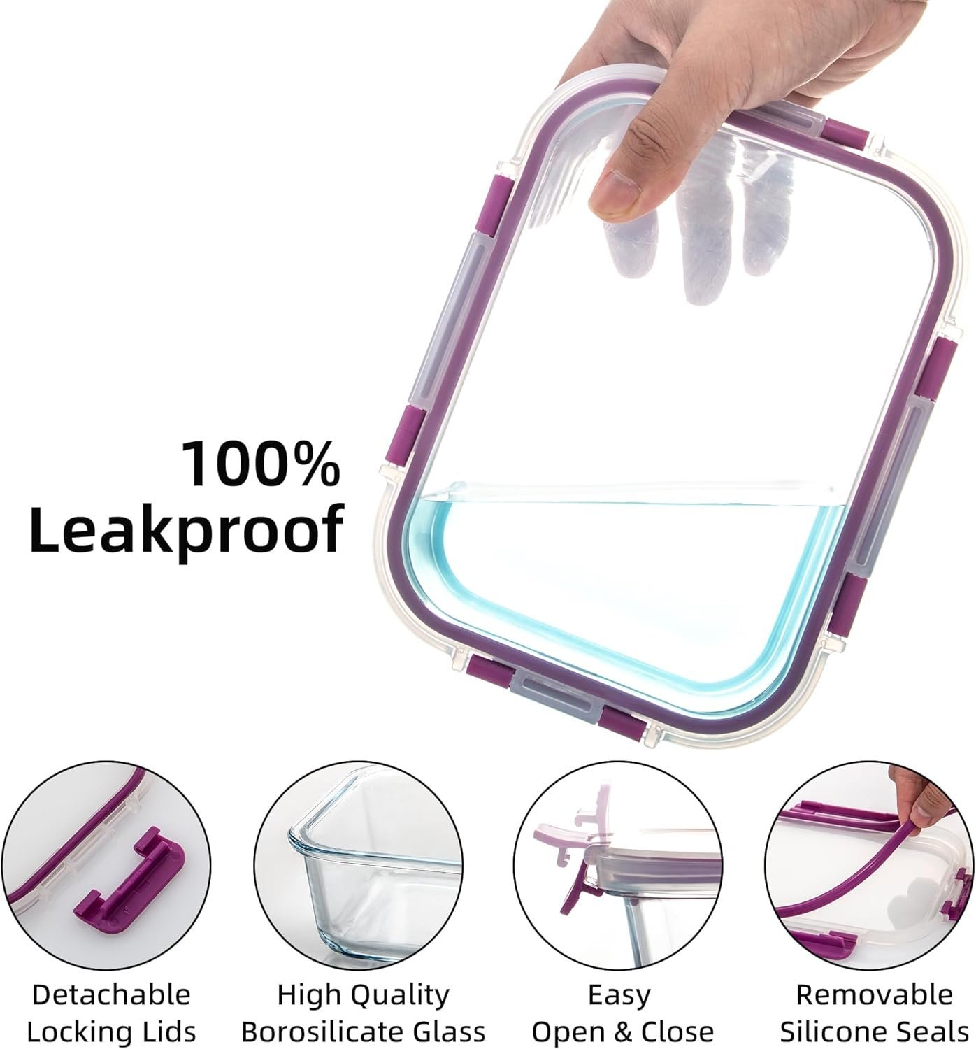 Nuestros recipientes de almacenamiento de vidrio están hechos de vidrio de borosilicato de alta calidad, que son aptos para microondas, puedes utilizarlos para almacenamiento en congelador, microondas (no las tapas) y lavavajillas.