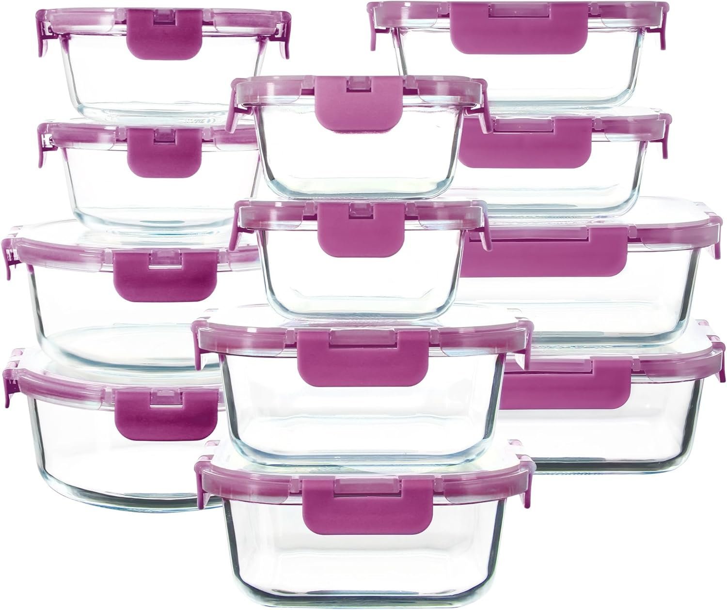 Este set de 24 recipientes de cristal es perfecto para organizar la nevera, cada uno cuenta con su tapa y todo se ajusta de maravilla.