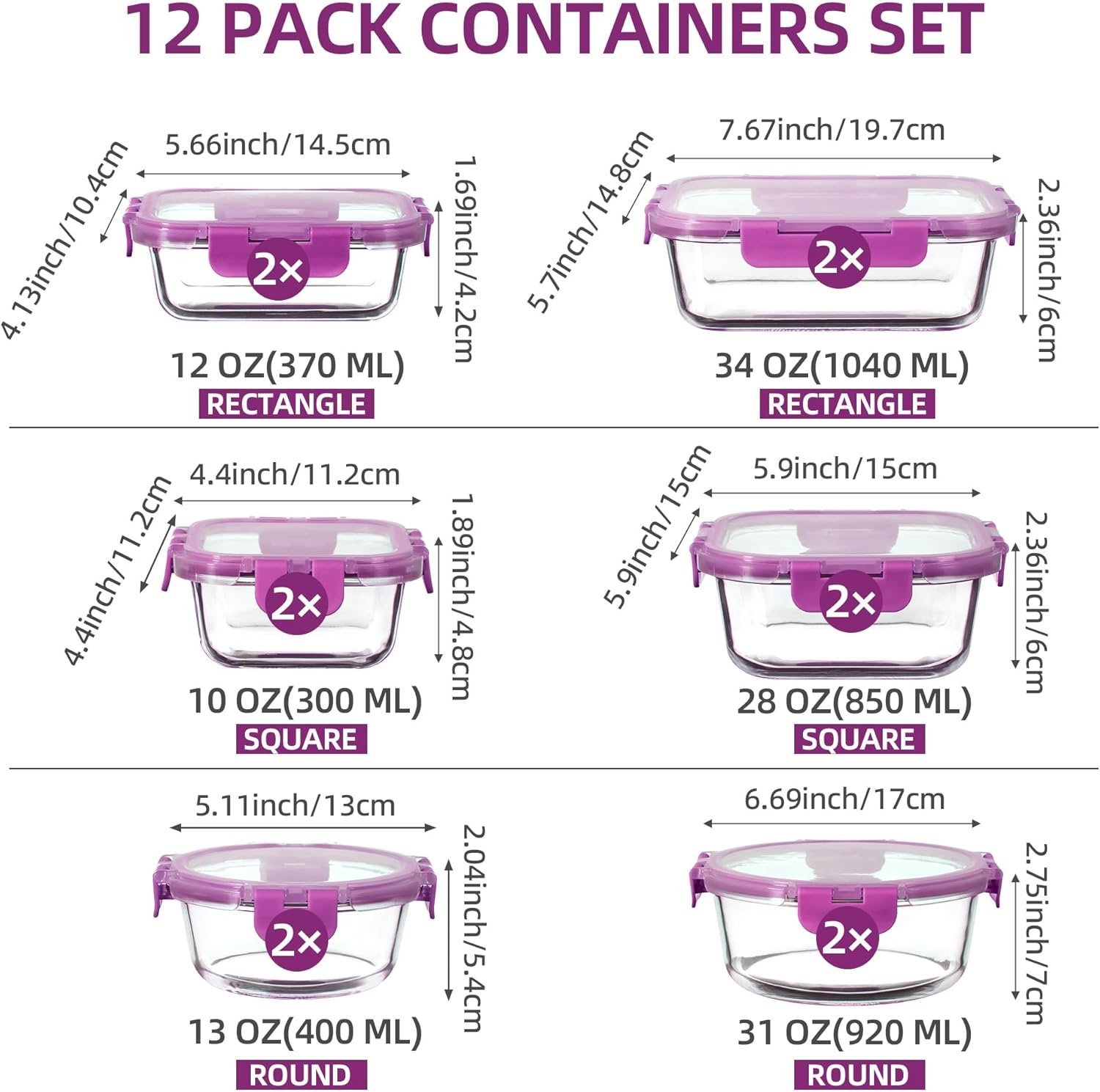 La cantidad es ideal, 12 recipientes con sus 12 tapas cubren todas mis necesidades de almacenamiento de alimentos en casa.