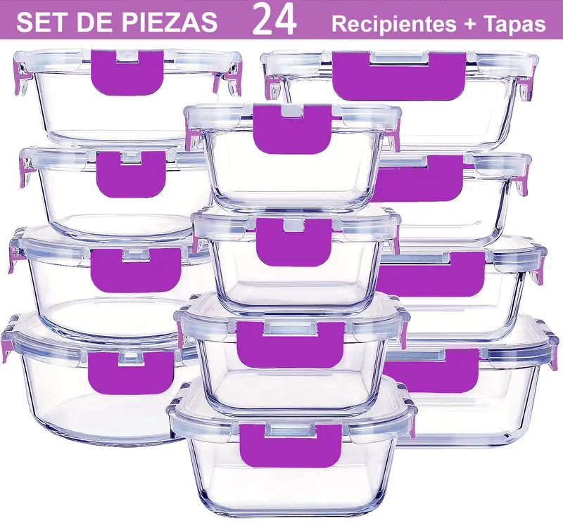 Recipientes de Cristal Para Alimentos – 24 Piezas (12 recipientes y 12 tapas) – Apto lavavajillas